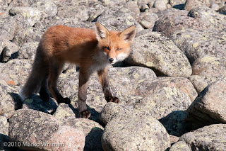 A cute little fox enjoying the wild raspberries on the island: